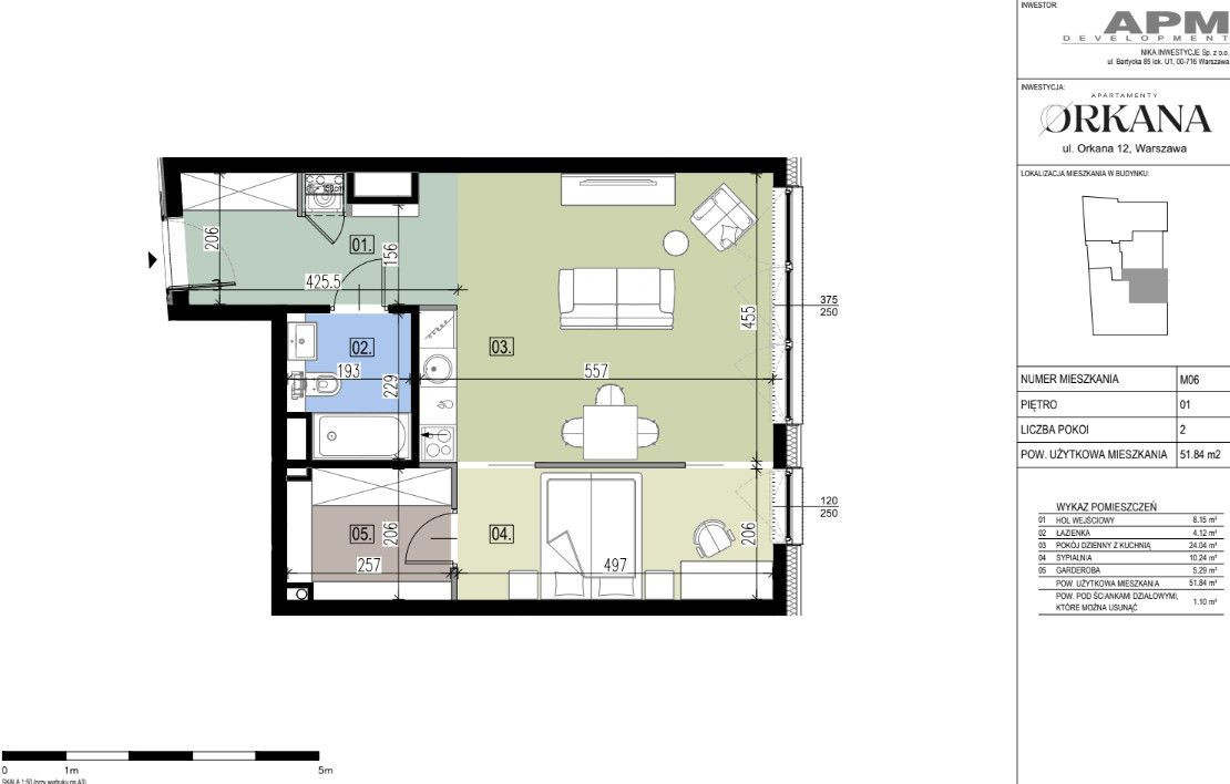 Inwestycja Orkana, Mokotów, 52 m2